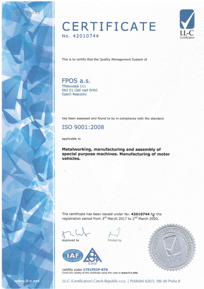 The major and sole investor of the FGR MIDALU project, the company of FPOS, disposes of the quality management system in compliance with EN ISO 9001:2009. The company introduced this system, which is a requirement for implementing projects for supranational companies, in 2002, when the company was also certified. Therefore, the products of the company are supplied to customers in top quality and always by the required date.